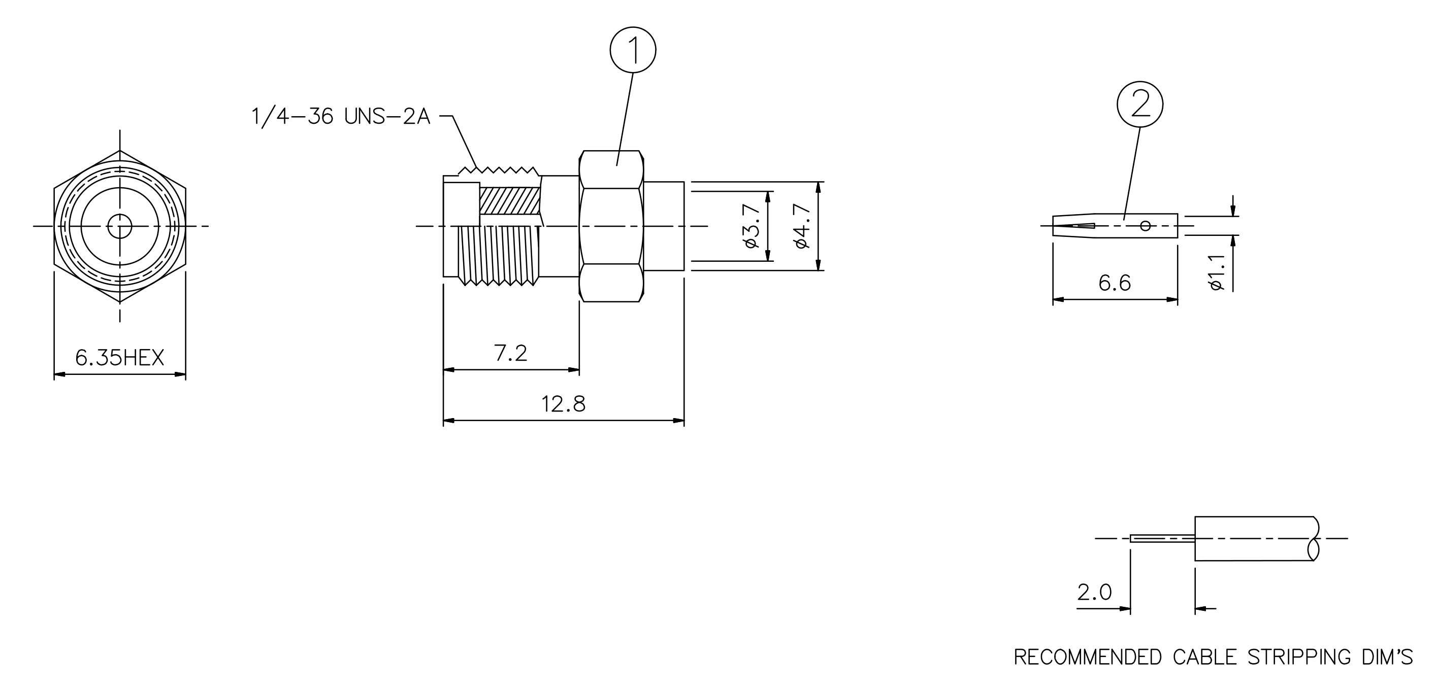 SMA(F) Straight Solder Type For Semi-rigid / flex.141 Cable 同軸轉接器