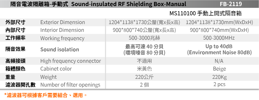 FB-2119 手動上開式隔音箱