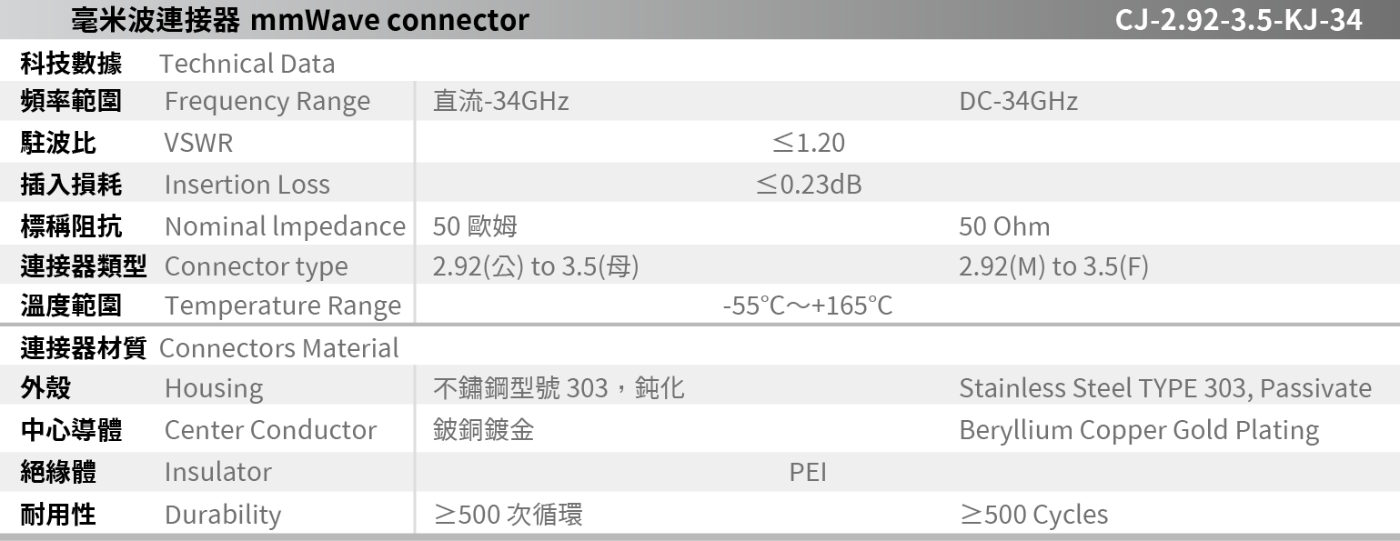 CJ-2.92-3.5-KJ-34 毫米波連接器