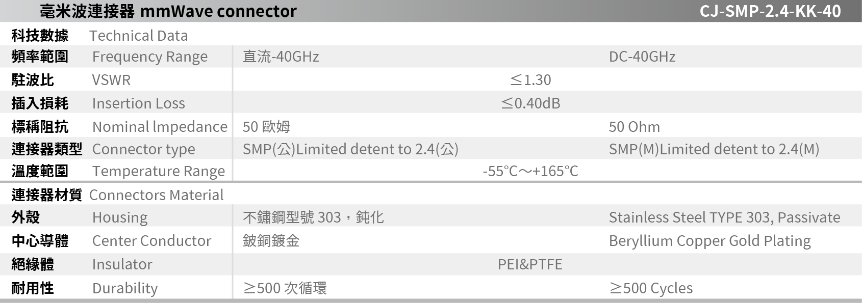 CJ-SMP-2.4-KK-40 毫米波連接器