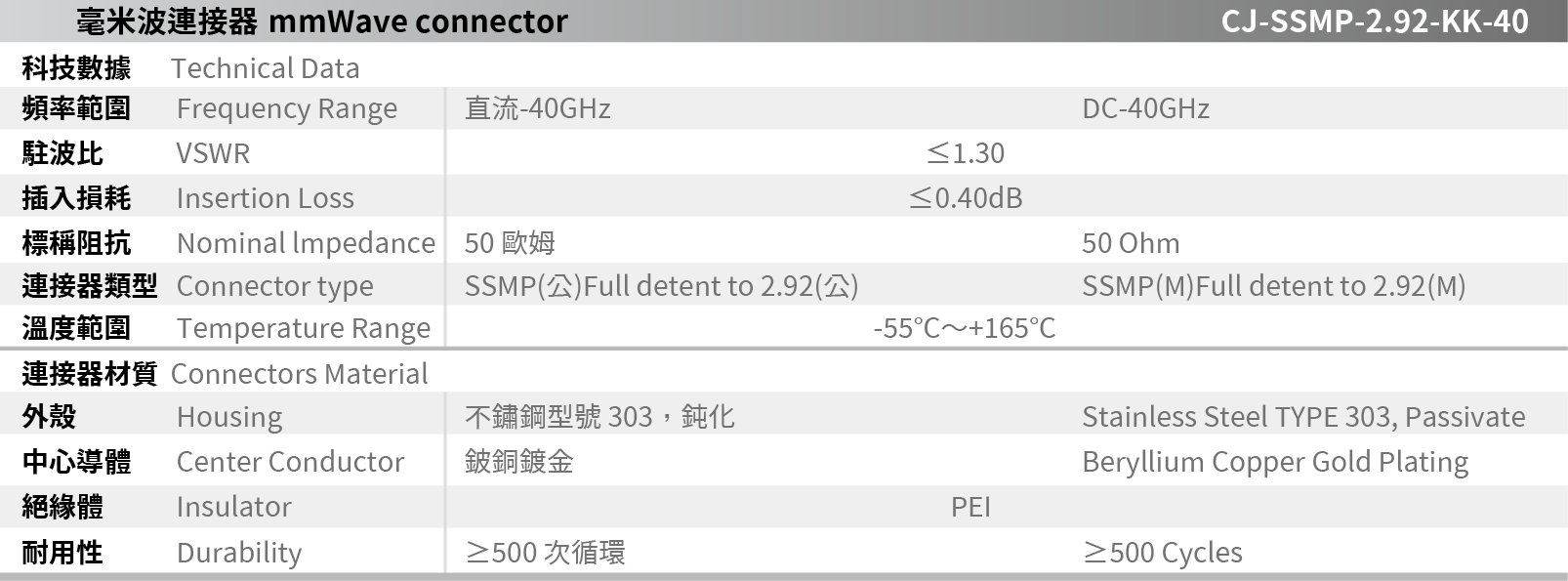 CJ-SSMP-2.92-KK-40 毫米波連接器
