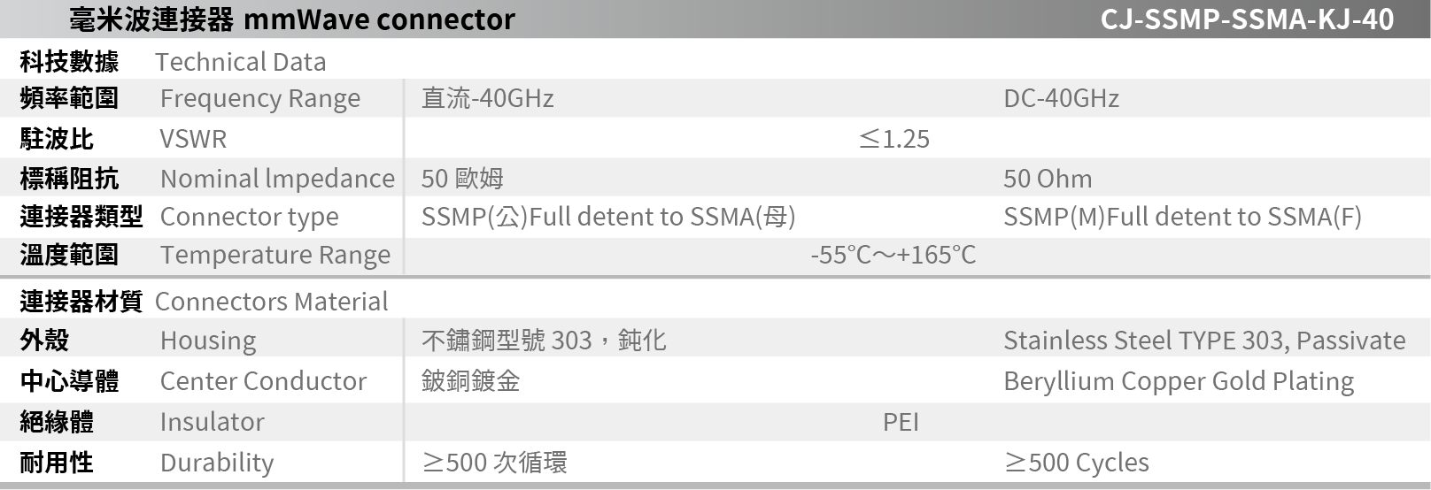 CJ-SSMP-SSMA-KJ-40 毫米波連接器