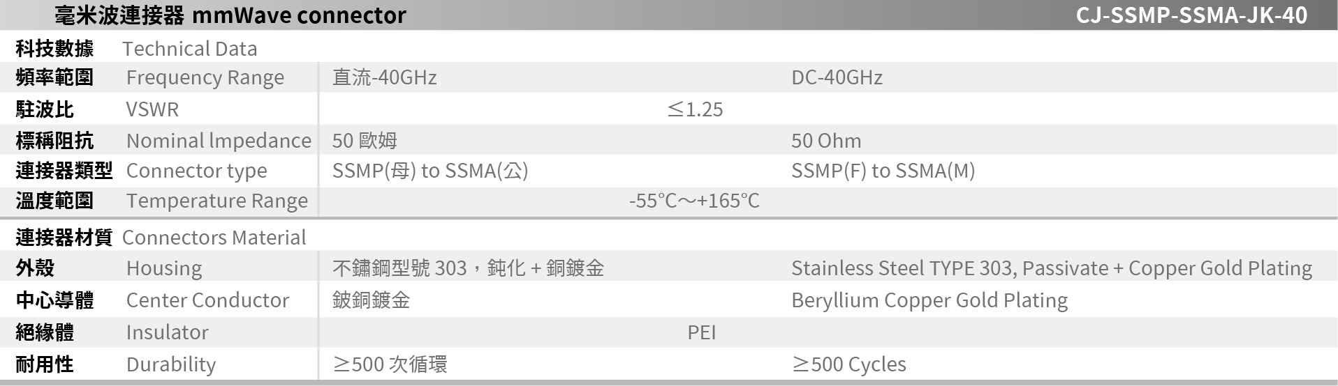 CJ-SSMP-SSMA-JK-40 毫米波連接器